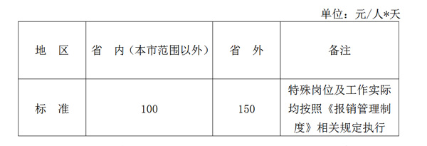 ??? 第十六條? 出差人員伙食補助標(biāo)準(zhǔn)見下表: