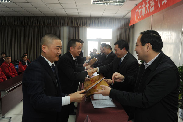 ??? 朱云主任在講話中充分肯定了公司近幾年發(fā)展所取得的成績,指出了公司發(fā)展面臨的一些困難和問題。朱云要求,公司上下要堅定信心,冷靜分析,以發(fā)展為主要任務,全力推進主營業(yè)務的同時積極開展多種經(jīng)營;強化班子建設,增強員工責任感和使命感,提升服務質(zhì)量;強化內(nèi)部管理,提升管理水平,向管理要效益;強化基礎設施建設,保證供區(qū)內(nèi)天然氣供應,為建設“美麗廣元、幸福家園”做出天然氣人應有的貢獻。